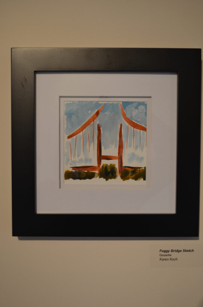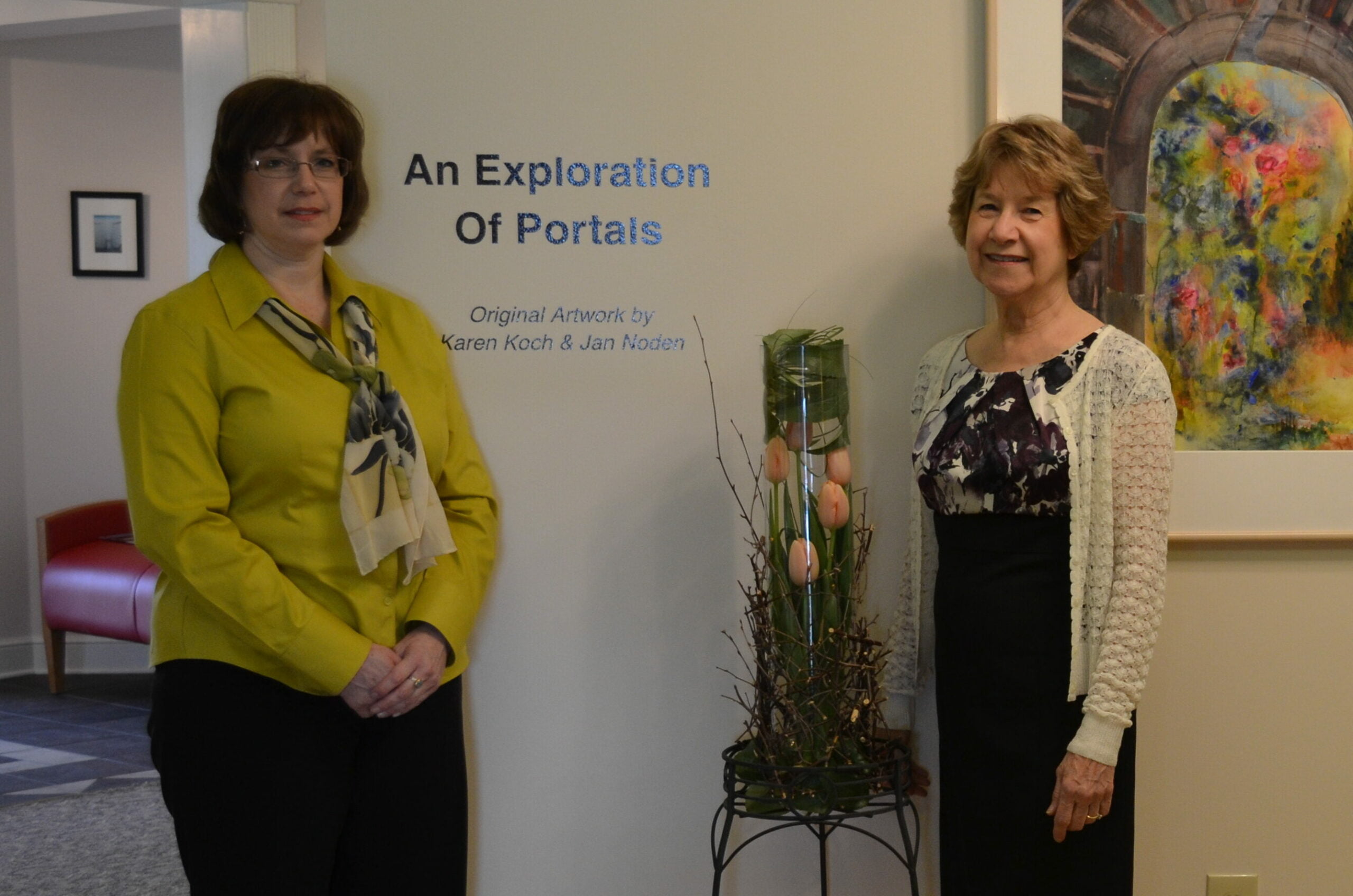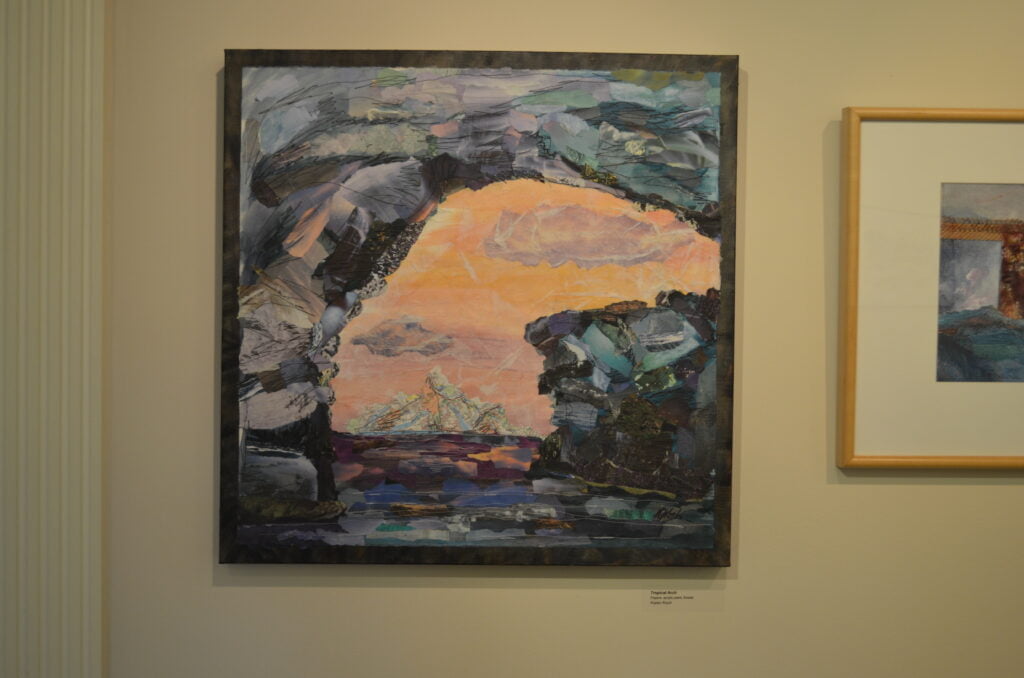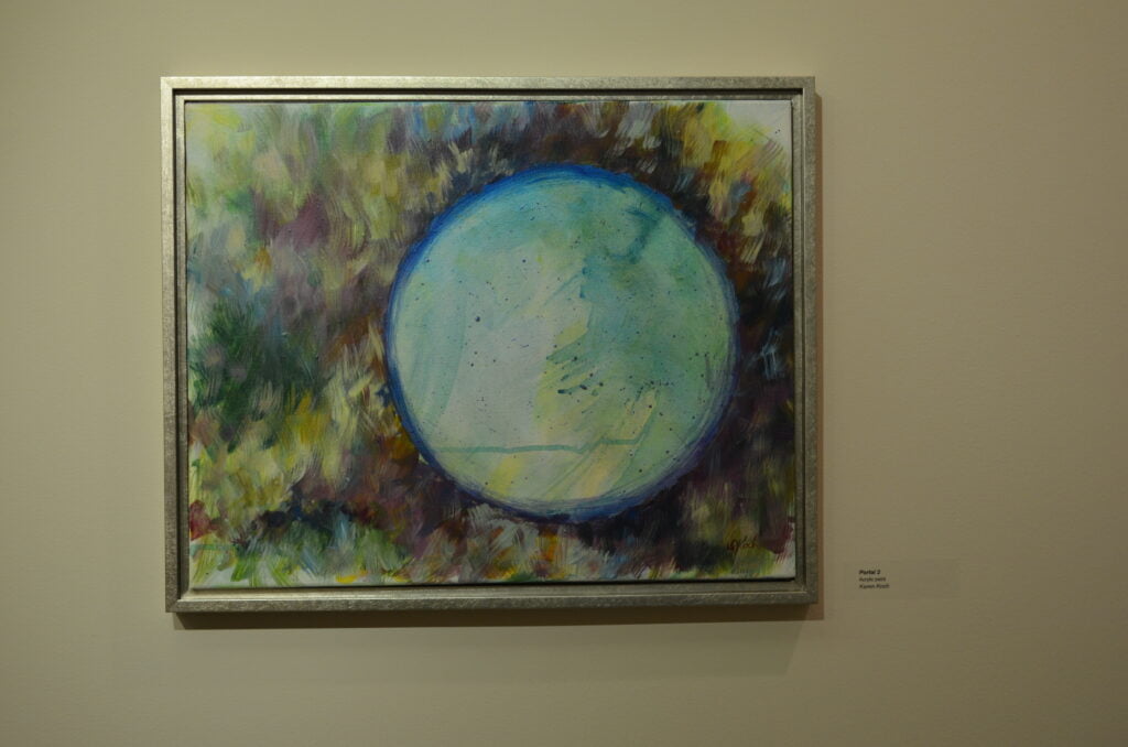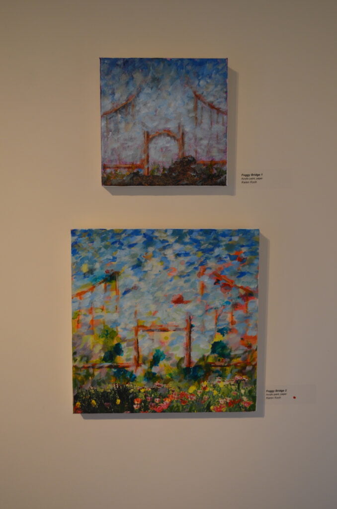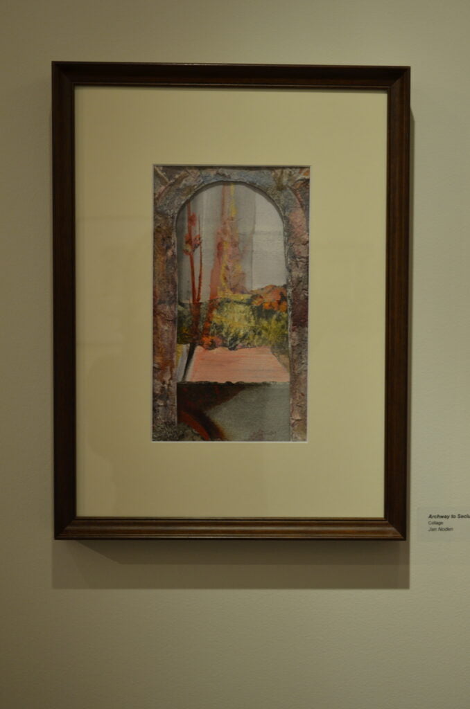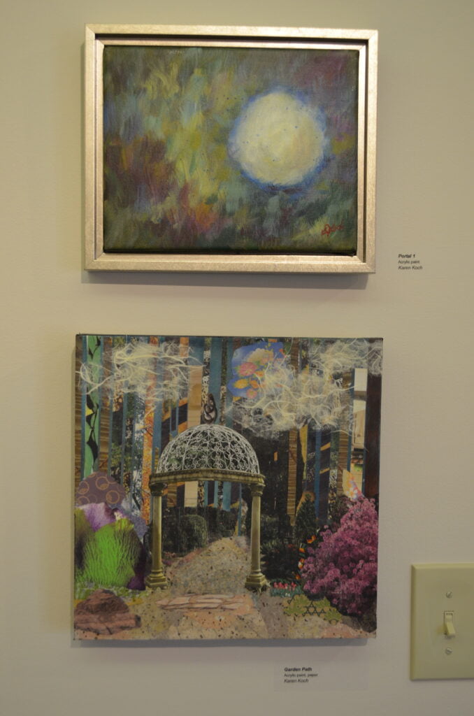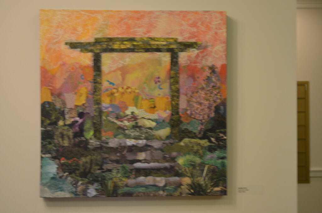 Gateways, transitions, portals: The artists had found the theme for this show. The artists challenged themselves to explore what these various types of portals meant to them and how to represent them. For this exhibit, the artists created all new artwork. They worked separately but met regularly to see how each was interpreting the theme. You will see arches and bridges, windows and gates.