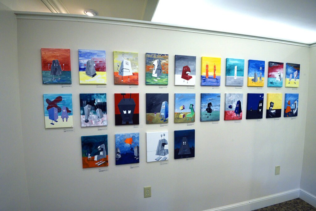 In making, he uses a method of careful, iterative study in substantial number, frequently series of 43. Methodically, he works to exhaust possibilities and make decisions. In doing so, he embraces the randomness and serendipity of the process and what unfolds or is revealed. His art is related to his strategic nature and love for ideation.