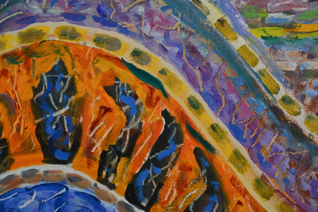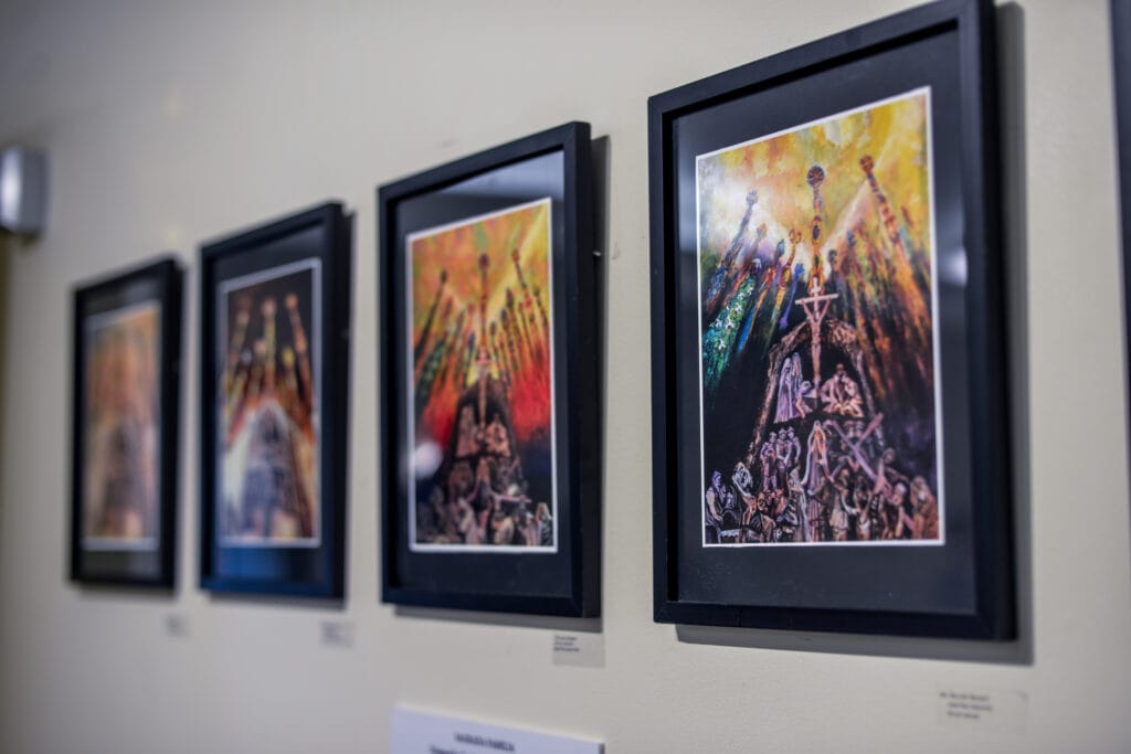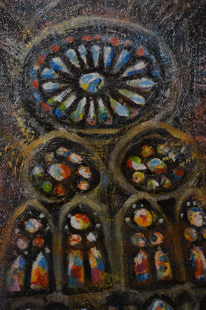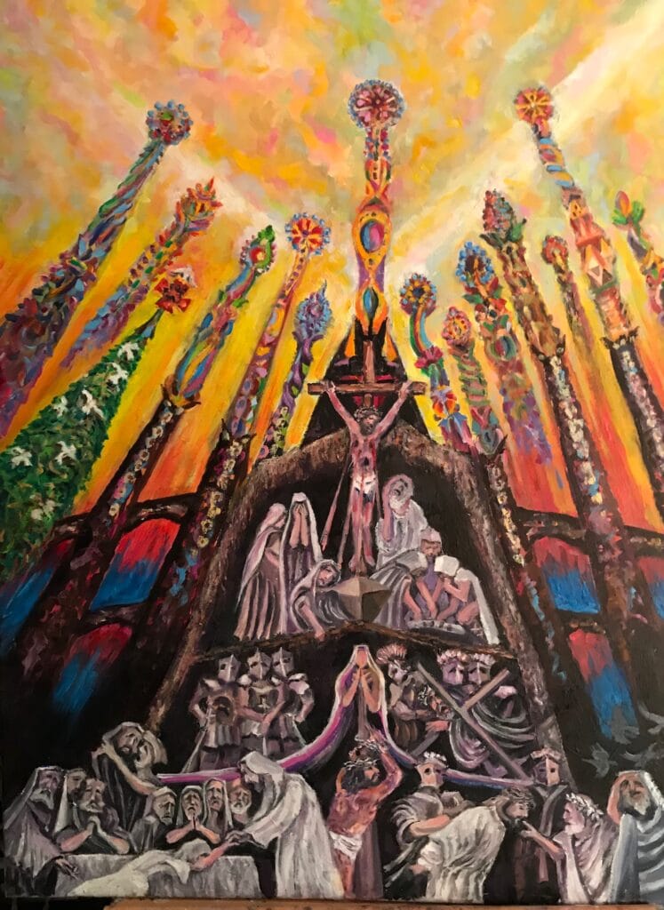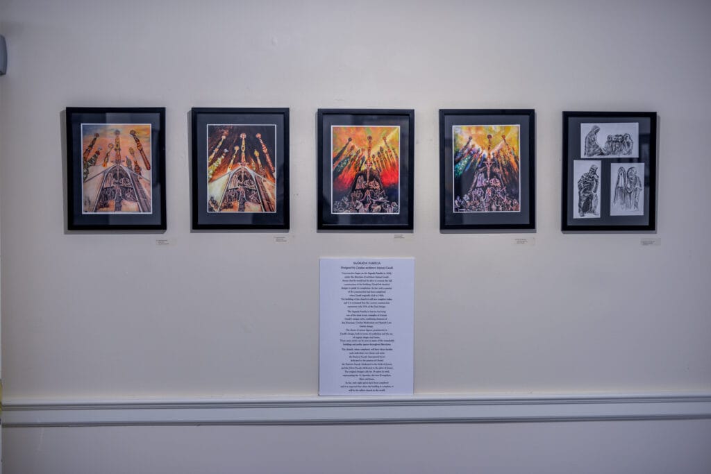 Inspired by Gaudi’s Basilica of The Sagrada Familia, he has elected to focus his interpretation on a single completed canvas accompanied by many of the preliminary sketches and paintings that led to its development and creation.