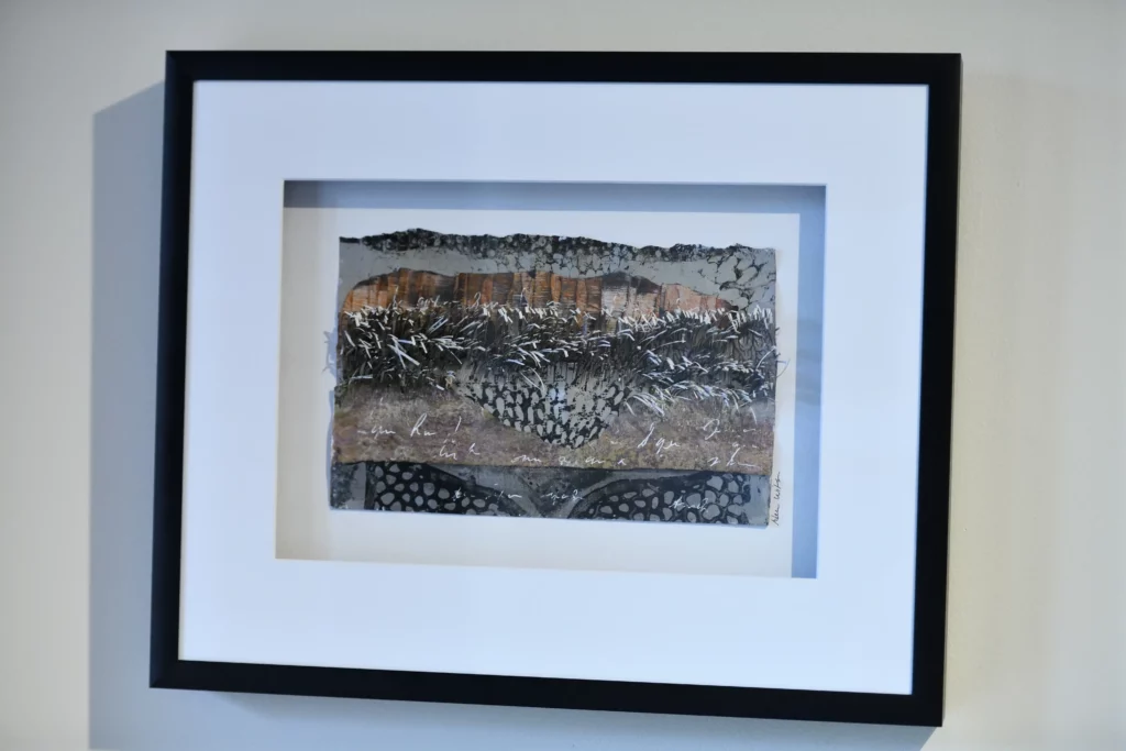Jump ahead several decades and in the 90’s, my family and I moved to the edge of the Cuyahoga Valley National Park. My childhood fascination with the natural world was rekindled and I found myself needing to give voice to the botanical world around me. I discovered a fascination for the relationship between “outer and inner”. The dormancy of winter plants, the buzzing of the pollinators, the hidden work of chlorophyll, the rhythm of the seasons, the mystery of seeds and the amazing world of grasses became some of my themes. The infinite layers found in nature are a common thread throughout my mixed media process.