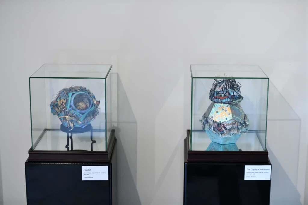 Our botanical works both compliment and collide in this exhibit. Enjoy.